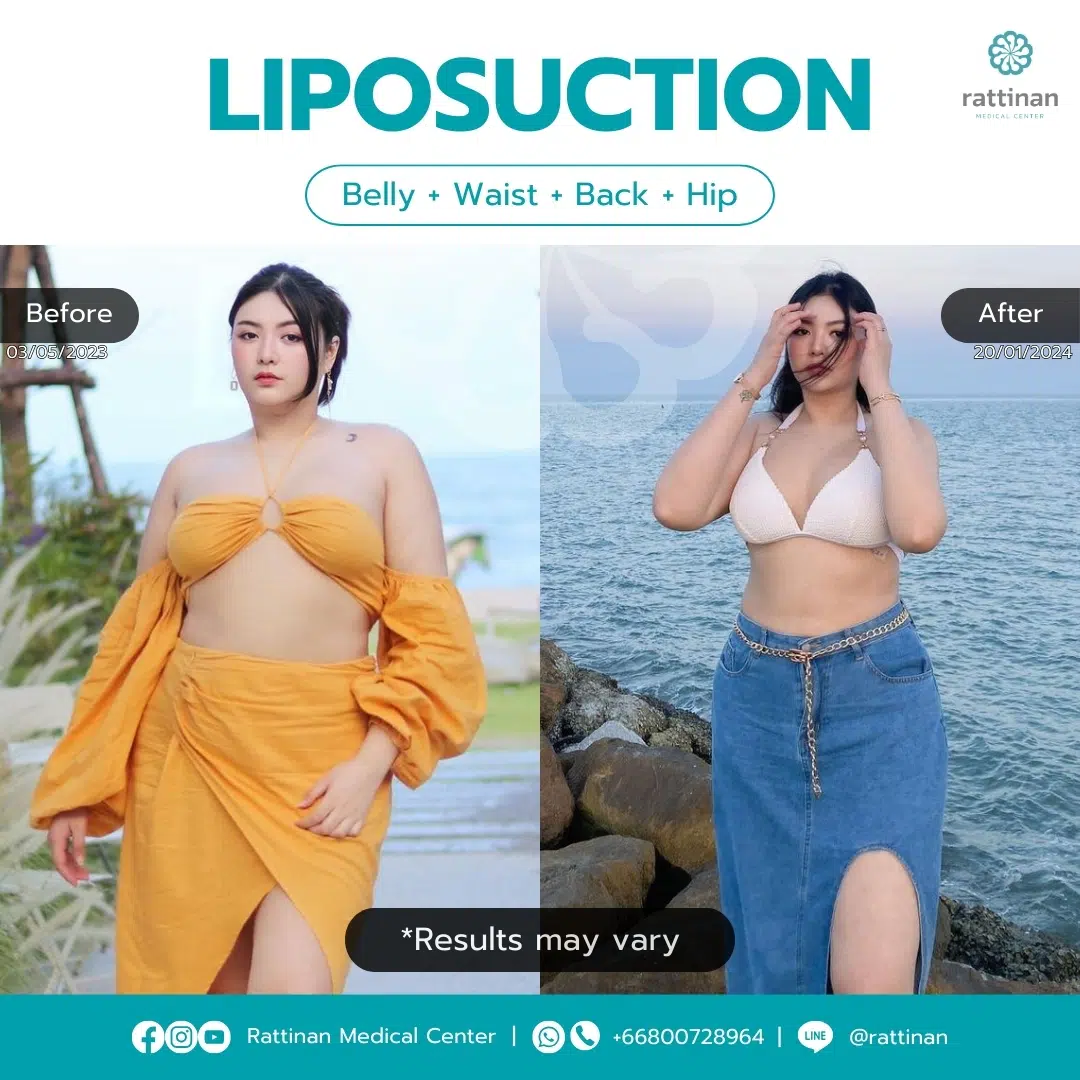 Like all surgeries, liposuction carries potential risks, including swelling, bruising, temporary numbness, infection, hematomas, uneven skin texture, or lymphatic congestion. At Rattinan Clinic, however, we prioritize safety by performing the procedure with expert surgeons in state-of-the-art operating rooms and a dedicated team to closely monitor you to minimize these risks.