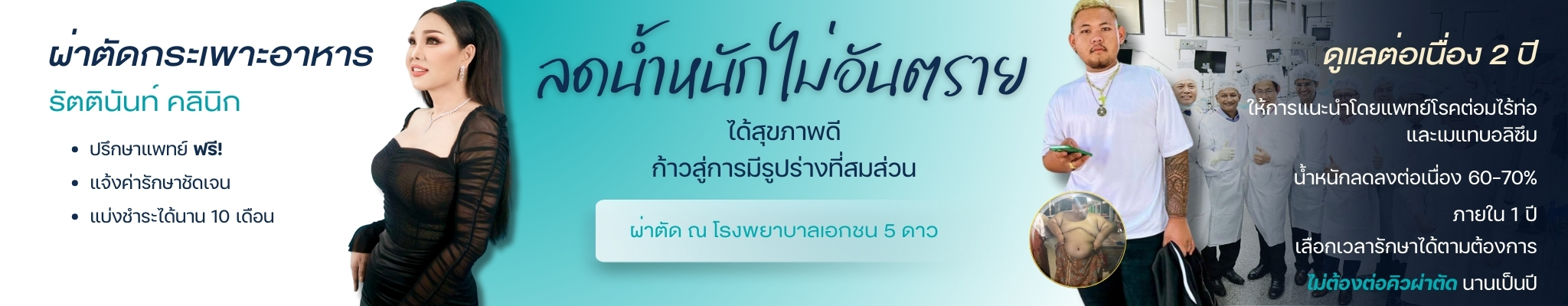 หลังจากผ่าตัดกระเพาะ สามารถมาติดตามผลและเข้ารับการดูแลต่อเนื่องที่รัตตินันท์คลินิกได้ โดยเรามีทีมแพทย์และนักโภชนาการคอยดูแลแบบครบวงจร